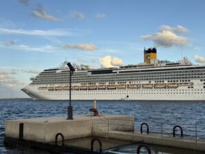 2025年9月21日、イタリア船籍の大型クルーズ船「コスタ・セレーナ号」が鳥取県境港に寄港しました。 本船の入出港にあたり綱取り・綱放し作業を行いました。入港前は小雨模様でしたが入港時には雨も上がり、穏やかな海況のもとスムーズな入出港となりました。 港湾の安心・安全な運航を支えるパートナーとして、確実な作業を心がけてまいります。